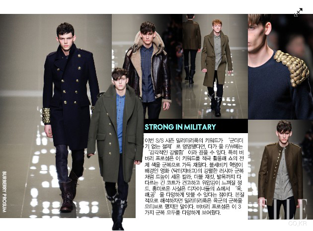 디자이너들의 사랑을 한 몸에 받고 있는 밀리터리룩. 그 반열에 함께하고 싶다면 주목하시라. 다가 올 F/W 시즌까지 알아두어야 할 밀리터리 키워드를 소개한다.