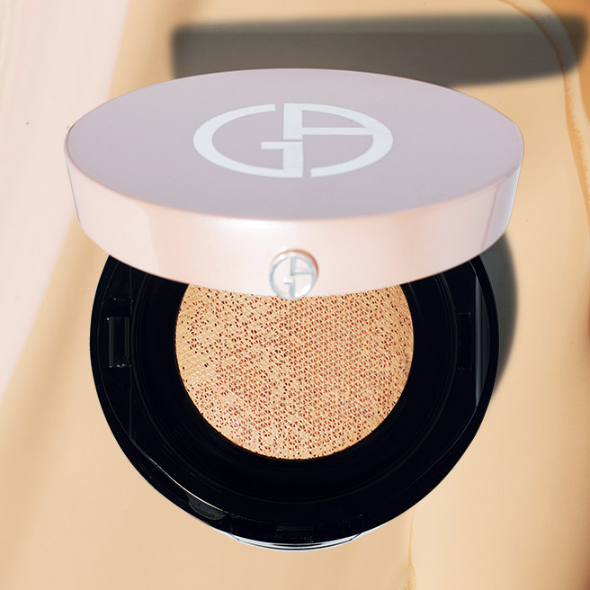 화사한 피부 표현에 제격인 마이 아르마니 투 고 에센스 인 파운데이션 톤업 쿠션 SPF 15/PA+, 핑크 포세린, 8만9천원대, Giorgio Armani.