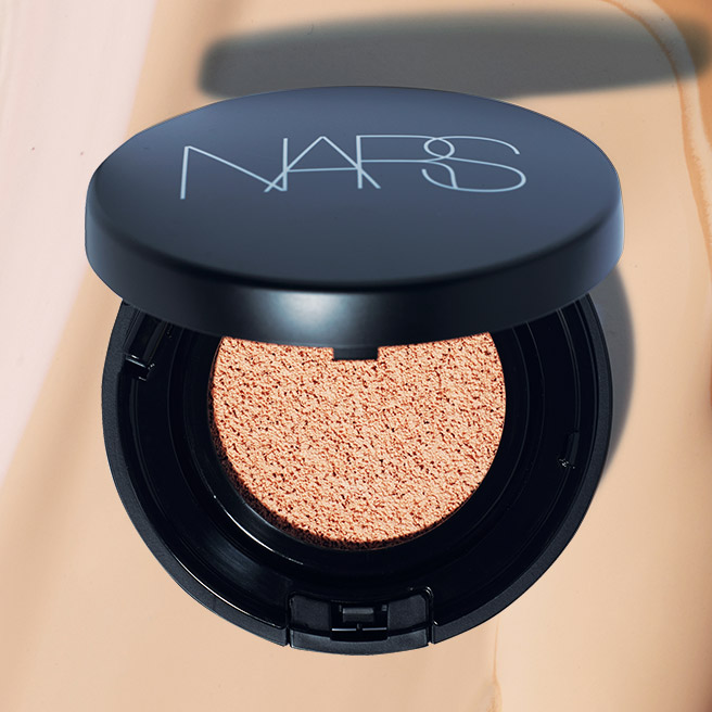 가볍고 촉촉하면서 커버력까지 갖춘 아쿠아 글로우 쿠션 파운데이션 SPF 23/PA++, 남산, 6만3천원, Nars.