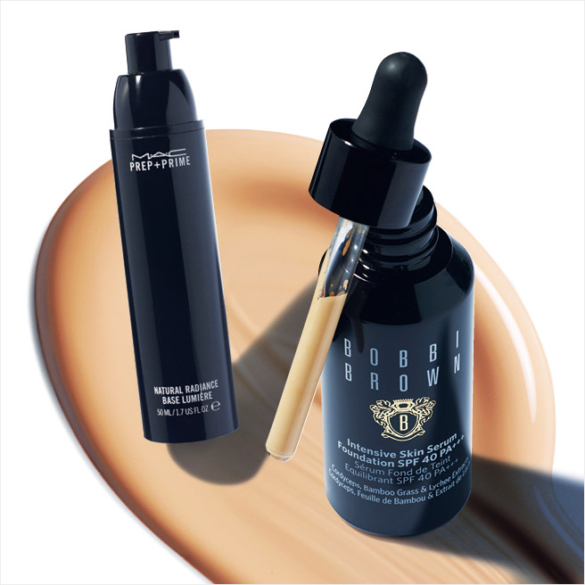 (왼쪽부터) 실키한 젤 타입으로 파운데이션의 지속력을 높여주는 프렙+프라임 내추럴 래디언스, 래디언트 핑크, 5만8천원, MAC.