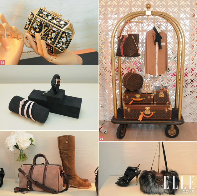2 의상의 감미로운 컬러와 잘 어울리는 자개 그리고 메탈에 래커를 칠해 만든 미노디에르는 밤이 되면 진정한 이브닝 박스의 진가를 발휘한다. 3 이번 시즌부터 루이 비통의 스테디셀러인 네버풀 백에도 이니셜을 새겨주는 몽 모노그램 서비스를 이용할 수 있다. |