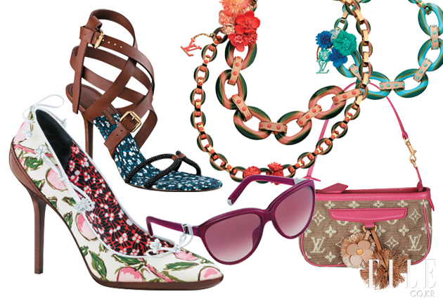 슈즈 역시 궁정 슈즈와 플라워 패턴 패브릭의 발렛 플랫 슈즈가 의상과 완벽하게 조화를 이루면서 귀여운 롤리타의 느낌과 따스한 휴양지를 동시에 연상시켰다. 한눈에 1950년대를 떠오르게 하는 캐츠아이 선글라스에는 골드 메탈 로고를 은은하게 장식했는데 선글라스와 세트를 이루는 볼드한 체인은 레트로 디바의 분위기를 고조시키기에 충분하다. 루이 비통 2011 크루즈 컬렉션에는 라피아 재카드로 만든 3가지 백이 등장했다. 비치 백과 액세서리 파우치 그리고 숄더 백으로 구성된 백과 함께 주목해야 할 액세서리는 바로 미노디에르(Minaudiere). 여성용 금속제 소형 화장품 또는 보석 케이스를 말하는 미노디에르는 의상의 감미로운 빛깔과 잘 어울리도록 자개와 래커를 칠한 메탈로 만들었는데 휴양지에서 맞는 화려한 밤에 그 진가를 발휘할 것이다. 고급스러움을 사랑하는 시크한 롤리타를 위해 미노디에르는 2가지 셔벗 팔레트로 만들었으며 희귀하고 섬세한 미노디에르의 내부는 부드러운 핑크 컬러 가죽으로 처리했다. 화사한 파스텔 컬러와 1950~60년대의 노스탤지어가 느껴지는 루이 비통의 2011 크루즈 컬렉션은 아름다운 생 트로페즈 해변에 ‘라 마드라그’라는 이름의 별장에서 당대 최고의 배우와 셀레브리티를 초대했던 브리짓 바르도의 최고 전성기를 떠오르게 했다. 별장의 이름이자 1963년 그녀가 발표한 곡의 이름이기도 한 ‘라 마드라그’의 아름다운 선율이 들리는 것 같은 루이 비통의 이번 크루즈 컬렉션이라면 남국의 리조트에서든, 지중해의 화사한 햇빛 아래서든 누구라도 아름다운 롤리타가 될 것이다.