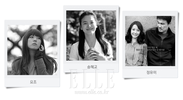 수더분한 캐릭터들을 범상치 않게 연기하는 정유미는 충성심 높은 고정 팬을 거느린다. 하지만 그 ‘정유미스러운’ 연기가 대중에게 어필했던 작품은 본능적으로 떠오르지 않는다. 신세경은 송강호와의 영화가 개봉 대기 중이지만 아직까지 ‘베이글녀’ 이미지가 강하다. 연기로 기억되어야 할 배우에겐 좋지 않다. 상황이 이러하니 ‘약진’이란 타이틀이 어울리는 건 ‘마이더스’가 온에어 되고 실시간으로 이름이 거론되는 이민정이다. 평가지표가 있어야 기대든 우려든 관심을 가질 수 있으니까. 김영재·<엘르> 피처 에디터