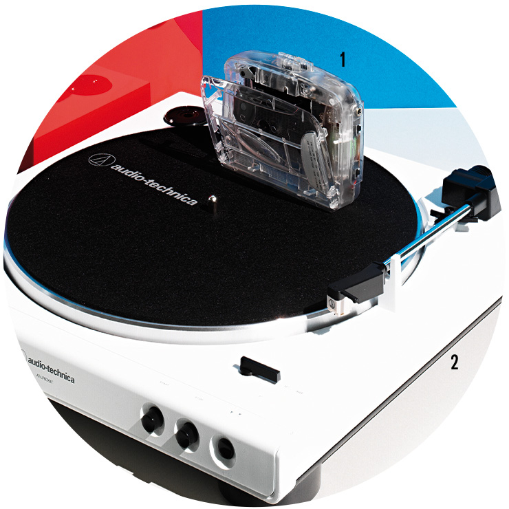 1 투명하게 제 속을 다 드러내 보이는 어반 아웃피터스의 카세트플레이어. 가격대에 비해 꽤 괜찮은 음질을 제공할 뿐 아니라 단순한 조작법으로 꾸준히 사랑받는 스테디셀러다. 형형색색의 카세트테이프를 끼워 넣으면 카멜레온처럼 여러 모습으로 변신한다. 표면에 스티커를 붙여 원하는 느낌으로 ‘다꾸’도 가능하니, 소유 경험을 중시하는 리스너들의 마음을 사로잡는 건 시간문제. AM/FM 라디오 기능은 덤이다. Urban Outfitters 투명 카세트플레이어, 4만6천원. 2 오디오-테크니카의 보급형 스테레오 턴테이블. 쉬운 작동법과 올 화이트의 미니멀 디자인은 감성과 실용성을 두루 만족시킨다. 가까이에 귀를 대고 서 있을 필요도 없다. 최신의 무선 스피커나 신상 헤드폰을 블루투스로 연결해 멀리 떨어진 방이나 야외 정원에서도 LP의 물기 어린 아날로그 사운드가 선사하는 낭만에 흠뻑 젖을 수 있으니까. Audio-Technica, AT-LP60XBT WW, 29만원대.