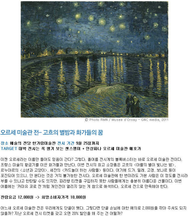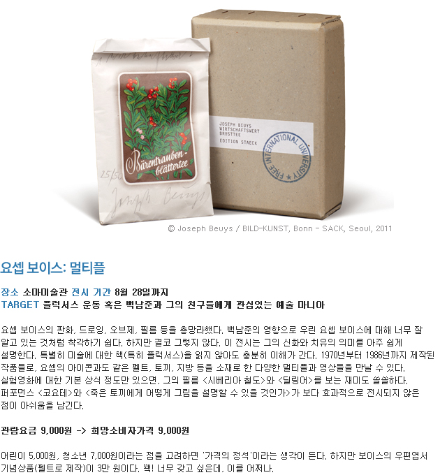 연일 내리는 비 때문에 여행을 떠나지 못한 사람이라면 도심 속으로 '시티 바캉스'를 떠나보자. 가벼운 마음으로 미술관이나 전시장을 둘러보는 것만으로 피서는 충분하다. 요즘 소문난 6개의 전시를 소개한다. 물론 최고의 전시들이니 일단 믿어도 좋다! 더불어 이 전시들에 다소 거품이 있는지 체크하기 위해서, 직접 관람 후 냉정하게 '희망소비자가격'을 책정해 봤다. 순전히 에디터의 귀여운 소망(!)이니 오해는 없으시기를.