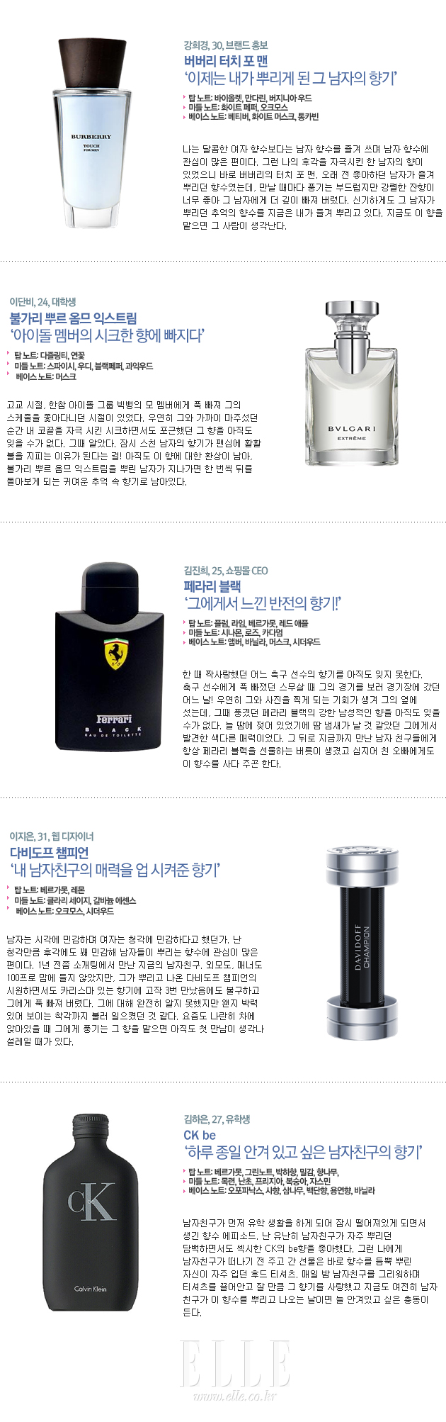 외모나 스타일이 완벽하지 않아도 언뜻 스친 남자의 향기에 온통 마음을 빼앗겨 버린 여자들이 모였다. 그녀들이 푹 빠진 향수 리스트를 참고하여 이제 남자들도 여자들의 마음을 사로잡을 자신만의 시그니처 향 하나쯤은 준비하시길!