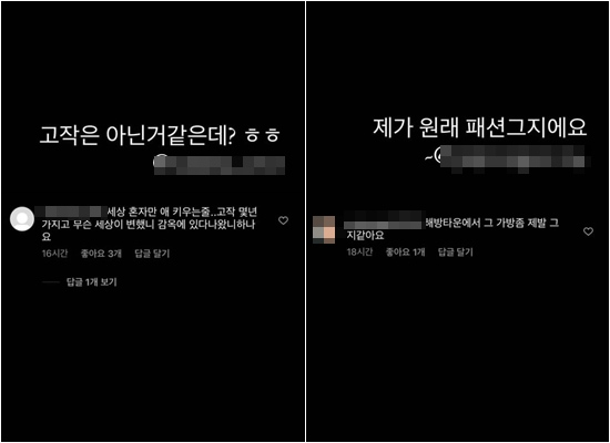 신지수는 해당 악플들을 캡처한 후 작성자들을 일일히 태그해 답변(?)을 남겼습니다. "(아이를) 발로 키우는 비법이 뭐냐. 진심으로 알고 싶다", "고작 (몇 년은) 아닌 것 같다", "제가 원래 패션 거지다"라는 식의 통쾌한 응수였죠. 이렇게 댓글들을 박제해 놓으니 오히려 악플러들이 주춤하는 모습인데요. 요즘 스타들의 악플 대응은 이런 식으로, 더 이상 참아주지 않습니다. 그러니 망신 당하지 말고 착한 댓글 고운 댓글만 달도록 해요.