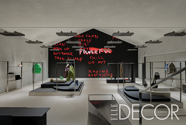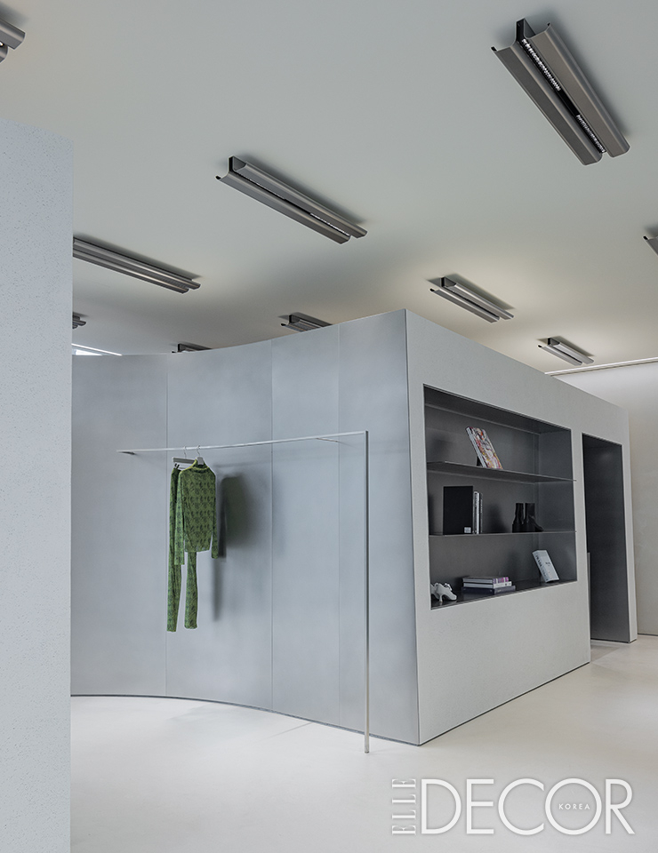 무신사 편집 숍 엠프티는 엠프티(Empty), 즉 비움이 공간의 전체 컨셉트였다. 1 · 2층은 보통 배수를 위해 설치하는 트렌치 바닥을 모티프로 했다. 바닥에 있는 축을 따라 모든 집기와 조명을 움직일 수 있다. 모듈처럼 자유자재로 변화하고 비울 수 있는 공간으로 만들었다. 애초에 용도를 재정의할 수 있도록 디자인했기에 팝업 스토어나 파티 공간으로 활용하기 쉽다. 4층은 비어 있음을 컨셉추얼하게 표현한 공간으로, 들어서자마자 사각형 박스의 단면만 차례로 보인다. 이 사각형은 공간의 반대쪽에서 보면 옷이 걸려 있다. 보통 옷을 거는 기능을 가진 행거가 공간감을 만드는 요소로 사용되진 않는다. 그런데 ‘빈 박스’를 모티프로 만든 행거는 하나의 시퀀스를 만들어낸다. 비움의 변주