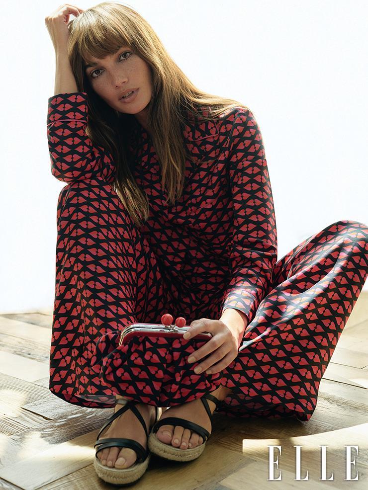 플라워 프린트의 실크 셔츠와 팬츠, 스트랩 샌들은 모두 Weekend Max Mara.