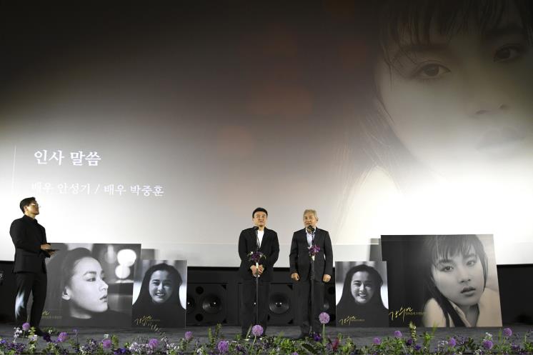 안성기는 혈액암 투병 중에도 배우 대표로 무대에 올랐습니다. 백발이 성성한 채 등장한 그는 "우리 수연 씨, 이 자리에는 없지만 어디에서든지 보고 있을 거라 생각한다"라고 말했어요. 이어 고인과 3편의 영화를 함께 한 박중훈은 "강수연은 내가 본 사람 중 외형적으로 가장 아름다운 사람인 동시에 실제 생활에선 검소하고 어려운 곳에는 선뜻 마음을 쓰는 통 큰 사람"이라면서 "1년이 됐는데도 슬픔이 잘 가시지 않는다. 그저 할 수 있는 건 영원히 기억하고 가슴에 담는 방법밖에는 없다는 생각이 든다"라고 행사의 의의를 전했습니다.