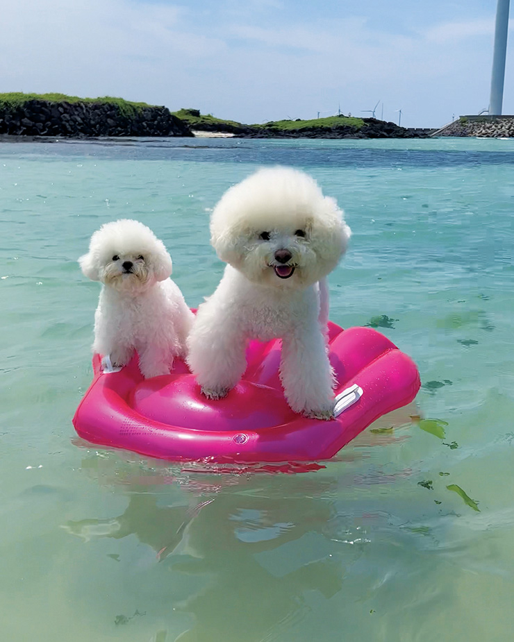한 마리. 26만 뷰를 돌파한 이 영상 하나로 마농이는 SNS에서 ‘스타견’이 됐고, 카약을 탔던 애월 한담 해변은 마농이의 애착 장소가 됐다. 영상에서 볼 수 있듯 마농의 특기는 다이빙과 바다수영. 몇 달 전 맞이한 ‘에펠이’라는 동생과 둘도 없는 형제 사이로 지내며 제주의 여러 바다를 함께 누비고 있다.