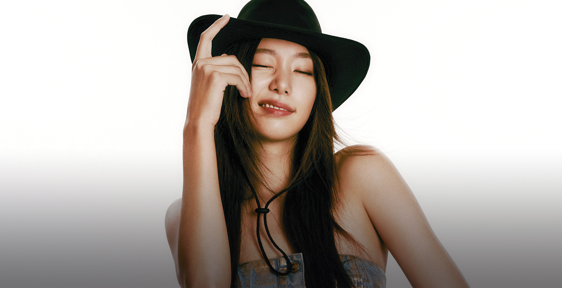 뷔스티에 톱은 Ganni. 데님 롱스커트는 YCH. 카우보이 모자는 스타일리스트 소장품.