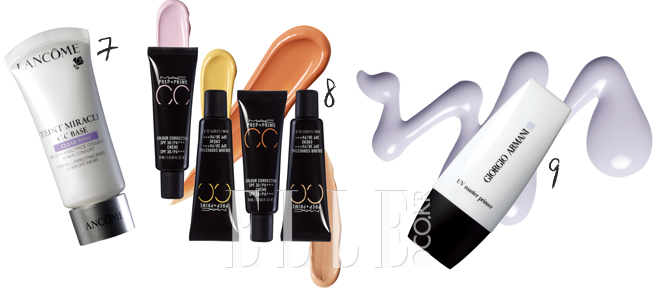 7 뗑 미라클 CC 베이스, 5만5천원, 랑콤. 랑콤의 파운데이션 중에서도 촉촉하게 빛나기로 유명한 ‘미라클 파운데이션’ 라인으로 출시된 피부 빛 코렉팅 베이스. 아시아 여성 대부분이 고민하는 특유의 노란 피부 톤을 보정하고 은은한 아우라 빛을 부여한다.
