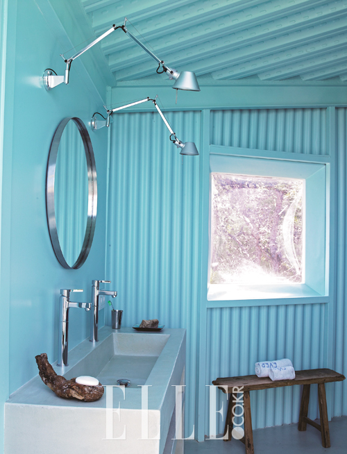 아쿠아 블루 컬러로 지중해의 물빛을 담은 욕실.