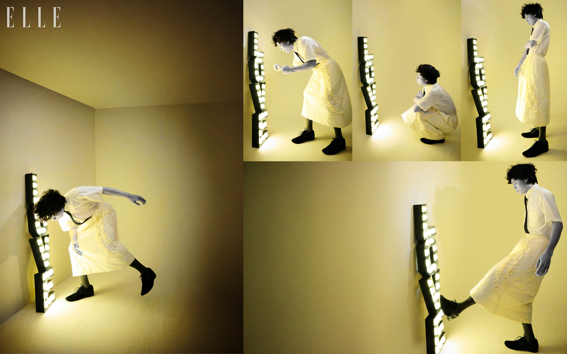 셔츠와 스커트는 모두 COMME DES GARCONS. 넥타이와 슈즈는 스타일리스트 소장품.