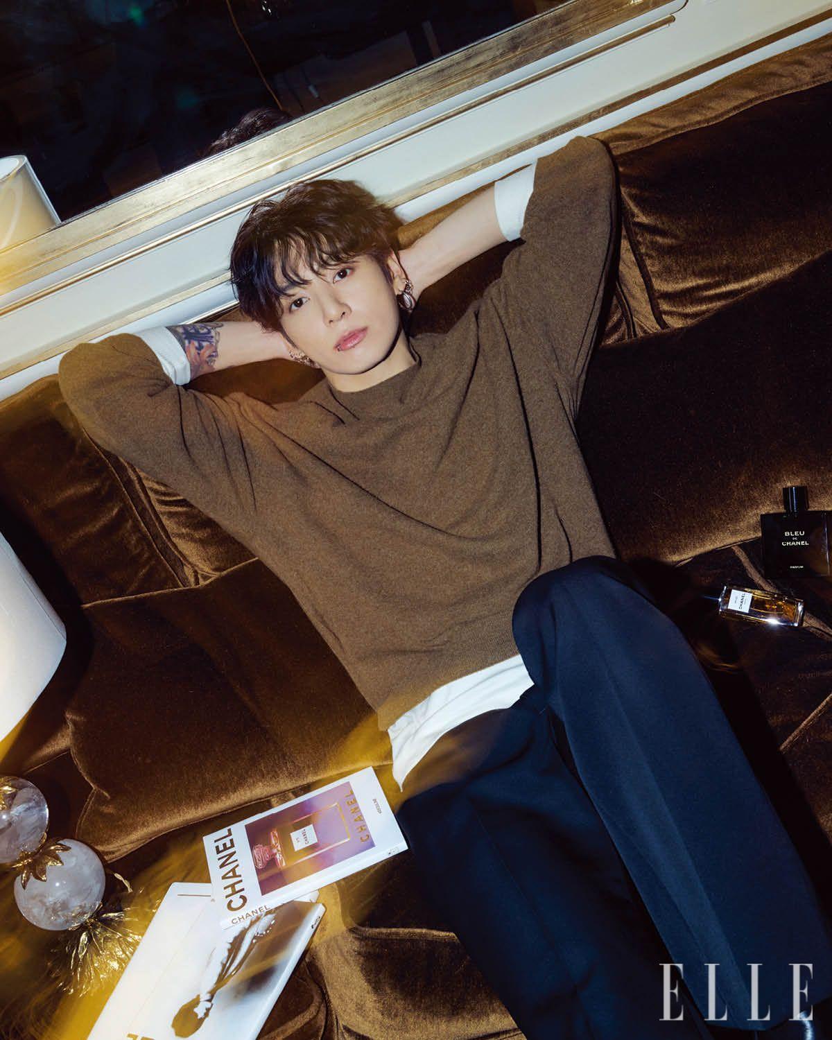 정국의 시선을 사로잡은 샤넬의 향수. 뉴칼레도니아산 샌들우드의 깊은 우디 향이 진취적인 남성의 이미지를 정의하는 블루 드 샤넬 오 드 빠르펭, 100ml 21만1천원, 샤넬이 좋아했던 베이지 컬러에서 영감을 얻은 온화한 안식처 같은 향으로 자연스럽게 기품을 더해주는 레 젝스클루시프 드 샤넬 베쥬, 75ml 38만원, 모두 Chanel.