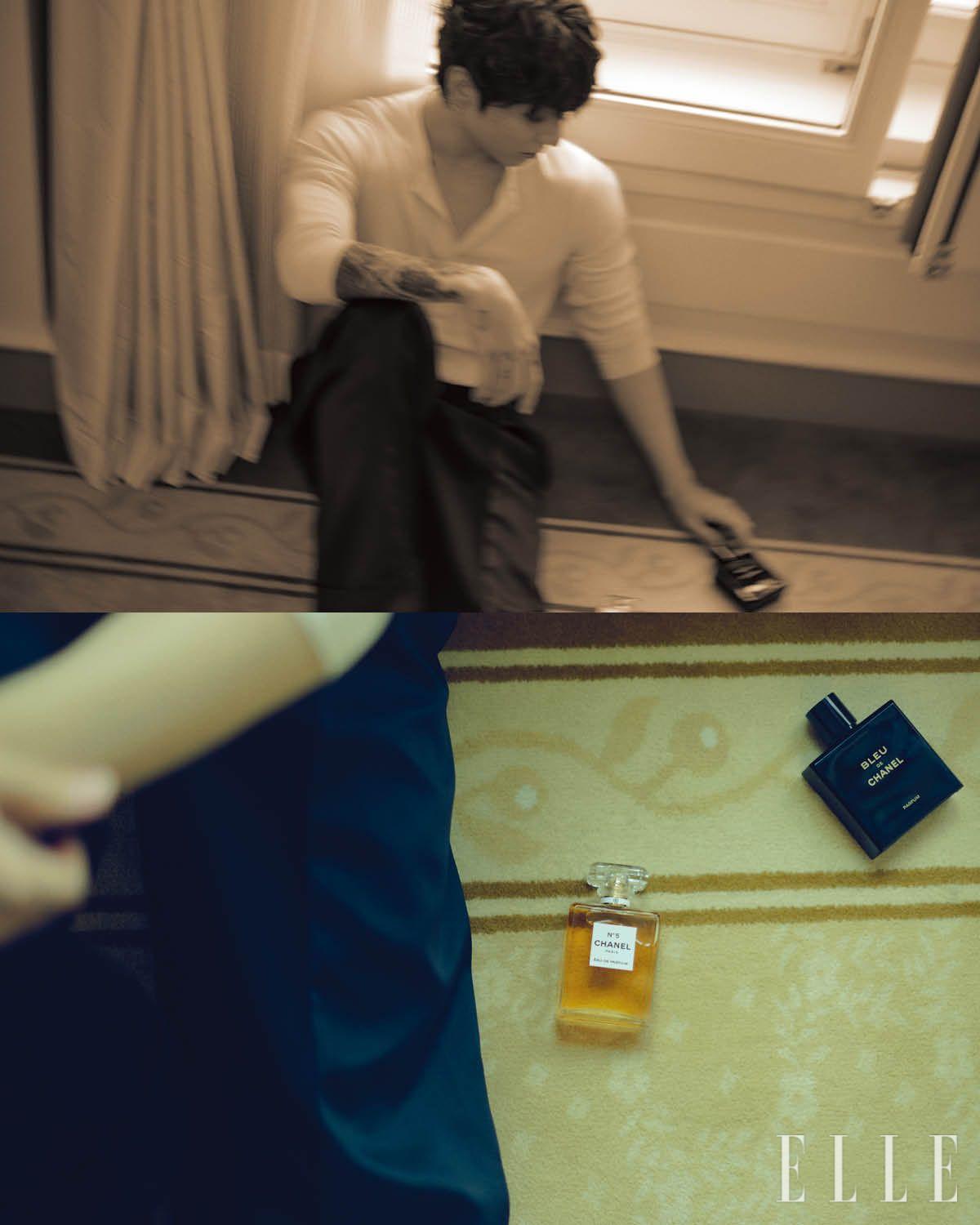 신선한 톱 노트와 파우더리한 하트 노트가 조화로운 N°19 뿌드르 오 드 빠르펭, 100ml 28만4천원, 주어진 현실에서 벗어나 진취적으로 삶을 살아가는 남성을 위한 블루 드 샤넬 빠르펭, 100ml 25만2천원, 모두 Chanel.