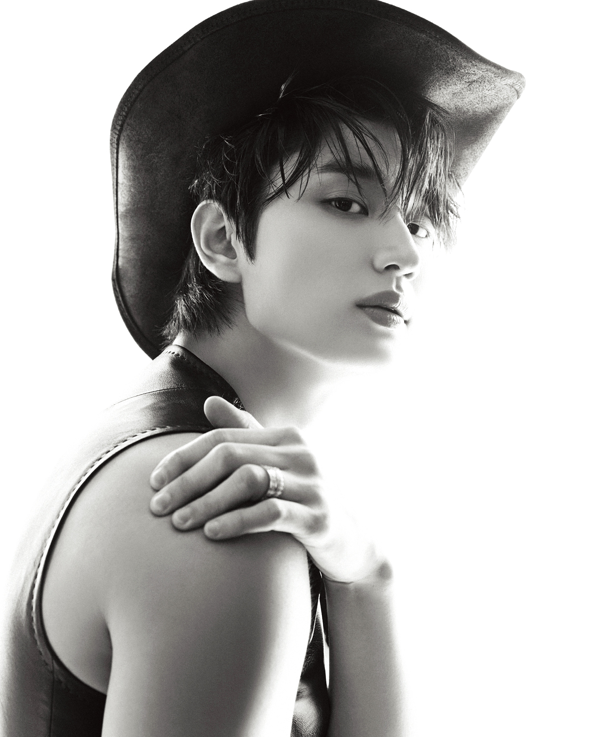블랙 레더 베스트는 Kimseoryong Homme. 실버 링은 Damiani. 블랙 웨스턴 페도라는 스타일리스트 소장품.